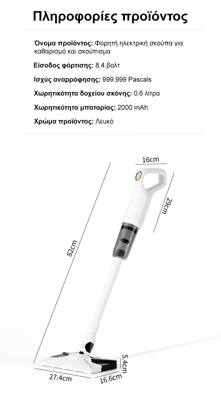 Ασύρματη Σκούπα και Σφουγγαρίστρα με Μεγάλη Ικανότητα Αφαίρεσης Ακάρεων